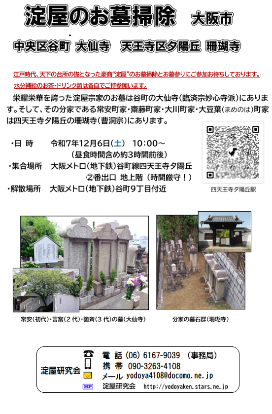 | 令和7年12月6日(土) 淀屋お墓掃除(大仙寺・珊瑚寺)行いました |