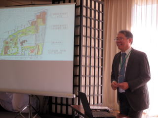 庭園の説明も兼ねて誘導して頂きました。また講演に先立ち川田翔子八幡市長よりご挨拶頂きました。