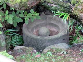 講演会では松花堂庭園に在る八幡柴座の淀屋住居跡に残存していた砧の手水鉢も話題になり、現在